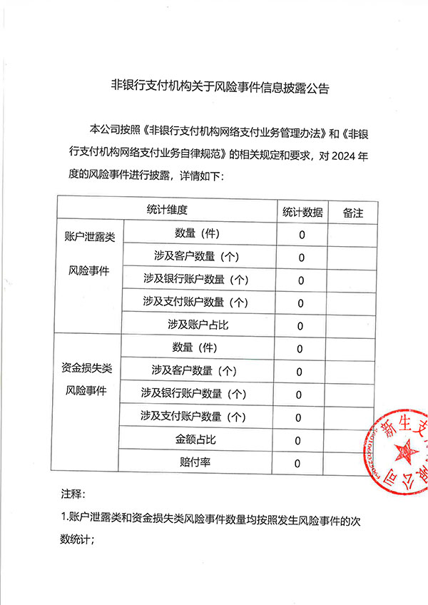 非银行支付机构关于风险事件信息披露公告