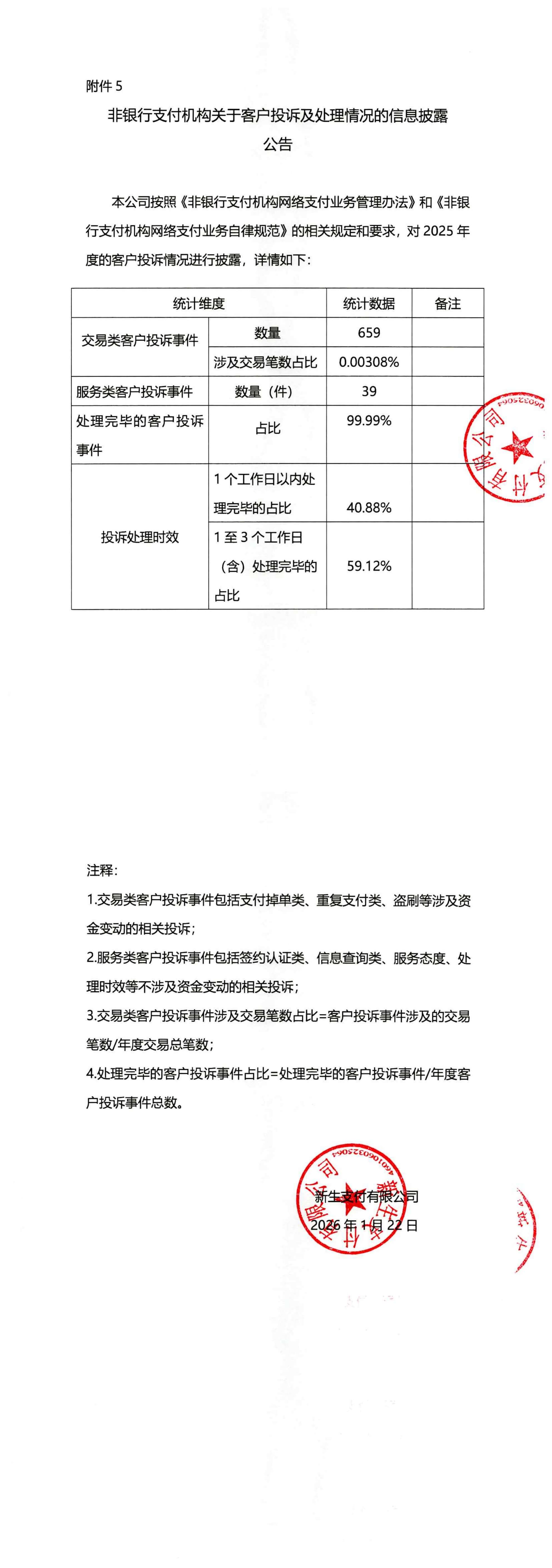 2025年非银行支付机构关于客户投诉及处理情况的信息披露公告
